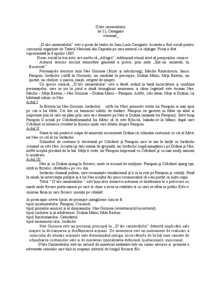 Rezumat D Ale Carnavalului Doc Document