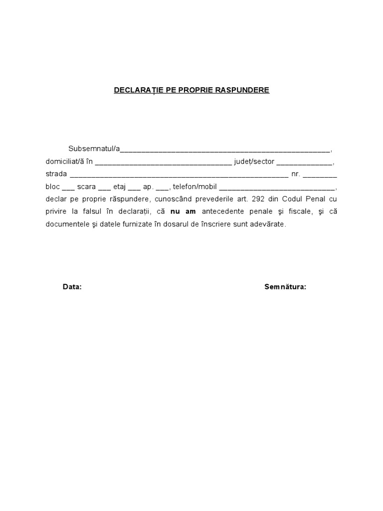 Declaratie Pe Proprie Raspundere Fara Antecedente Penale