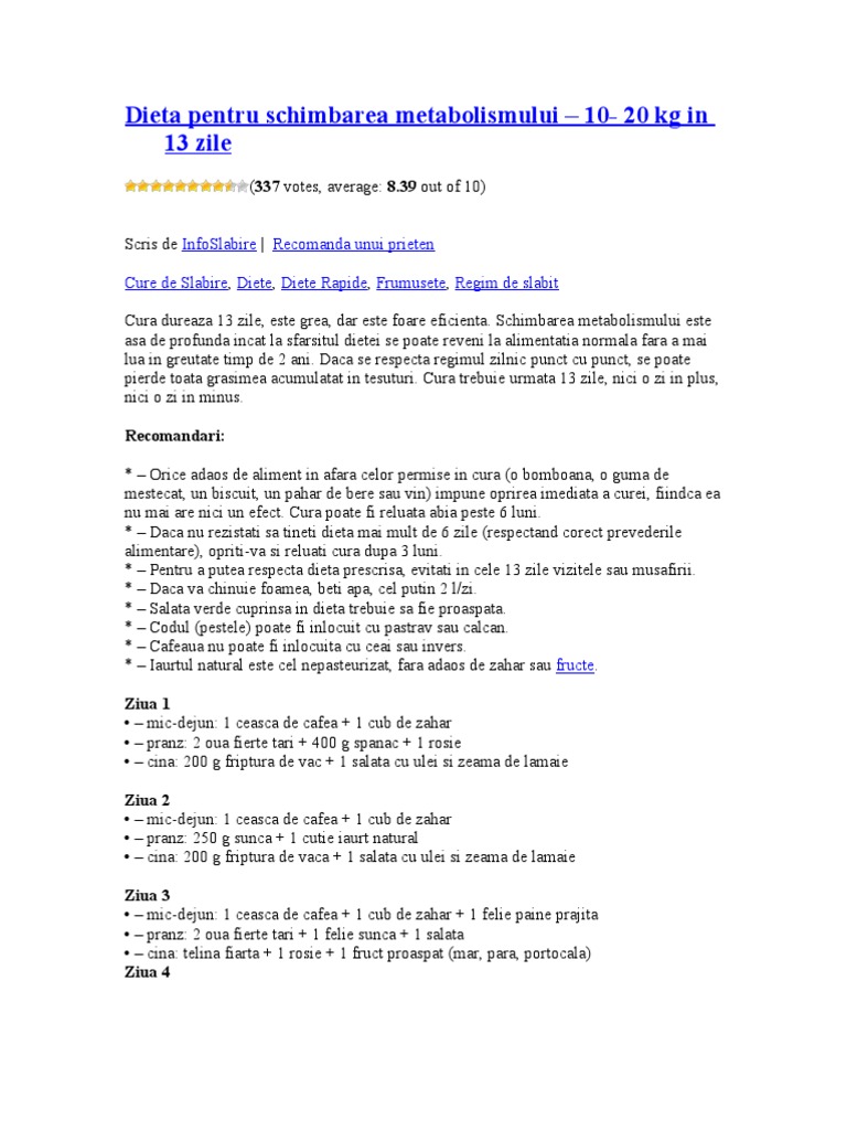 Dieta De 13 Zile Pentru Schimbarea Metabolismului