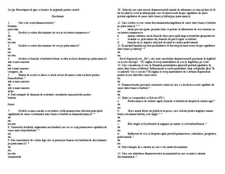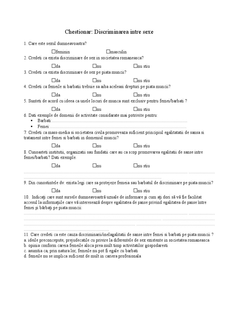 Egalitatea de sanse intre femei si barbati pe piata muncii. Egalitatea de sanse intre femei si barbati si accesul pe piata muncii din romania 9 10 din 1 vot acest proiect trateaza egalitatea de sanse intre femei si barbati si accesul pe piata muncii din romania. Nu ezitați să apelați linia națională telefonică cu nr. Arhiva contine 1 fisier doc de 10 pagini. Ai nevoie de doar 4 puncte.