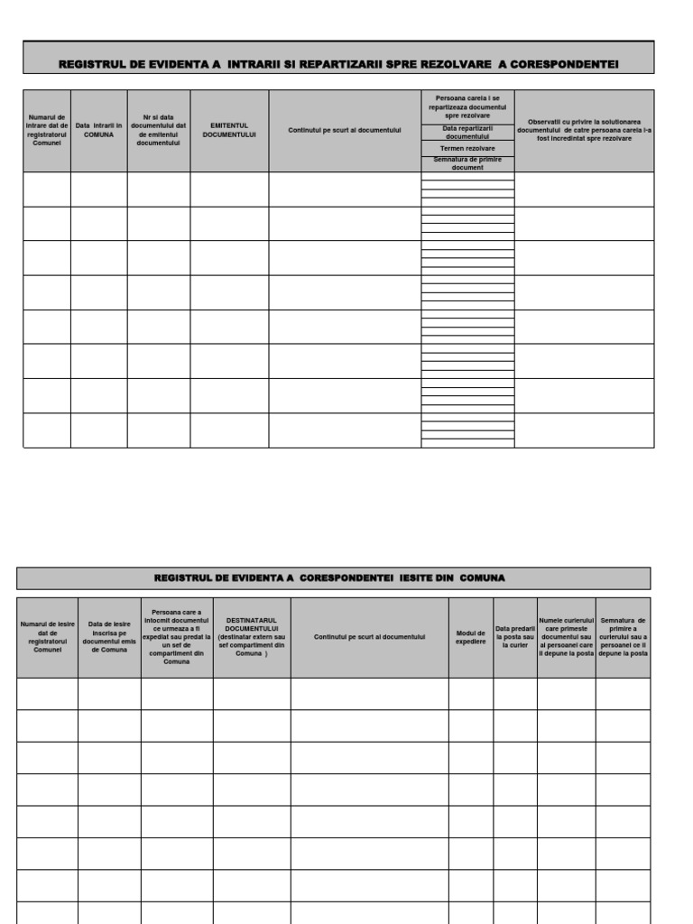 Registru Intrare Iesire A Corespondentei Orizontal Formular Preturi