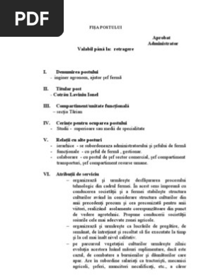 Fisa Post Muncitor Necalificat Agricultura Pdf Document
