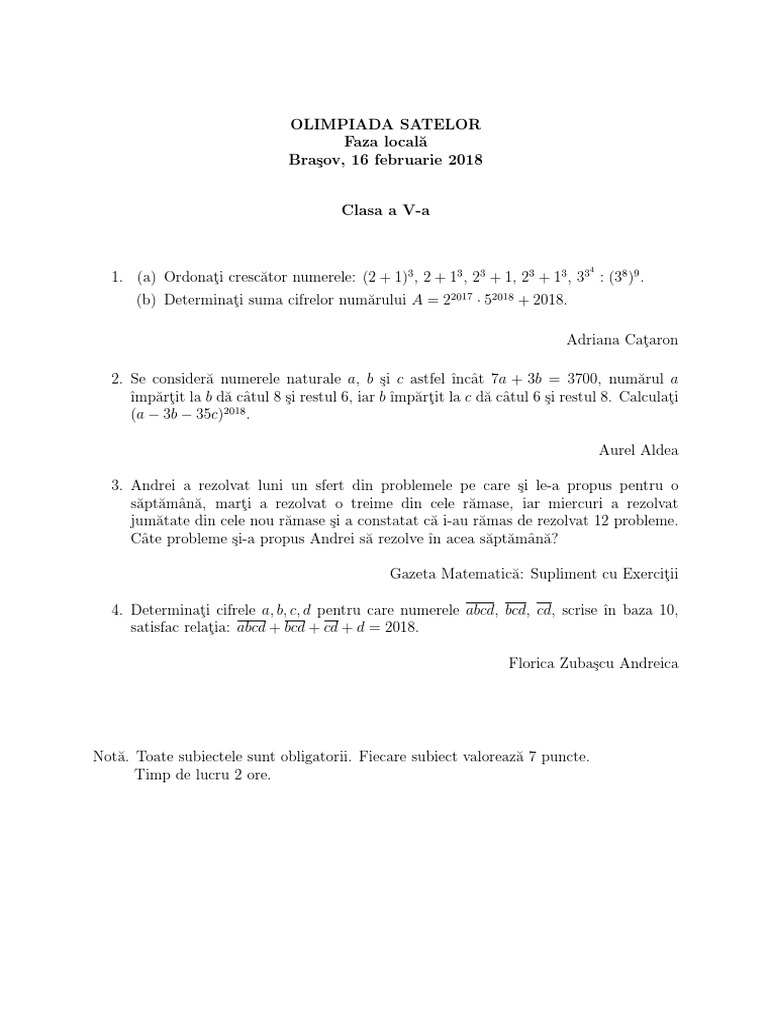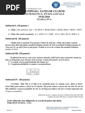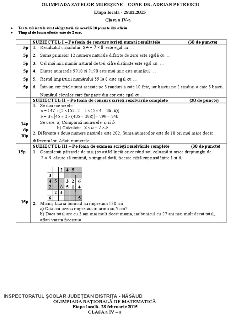 2015 Olimpiada Locala Mures Clasa A Iv A Subiecte