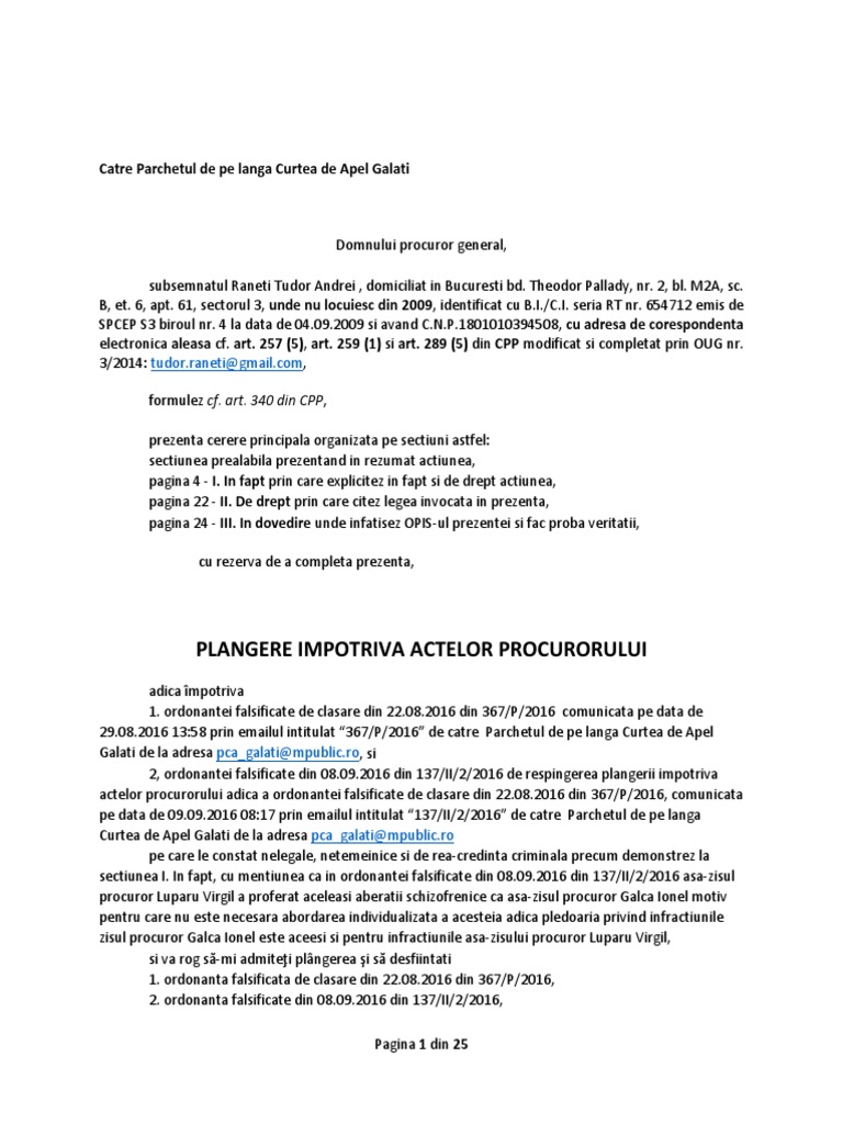 Plangere Impotriva Actelor Procurorului Cf Art 340 Din Cpp Si Probe 367 P 2016