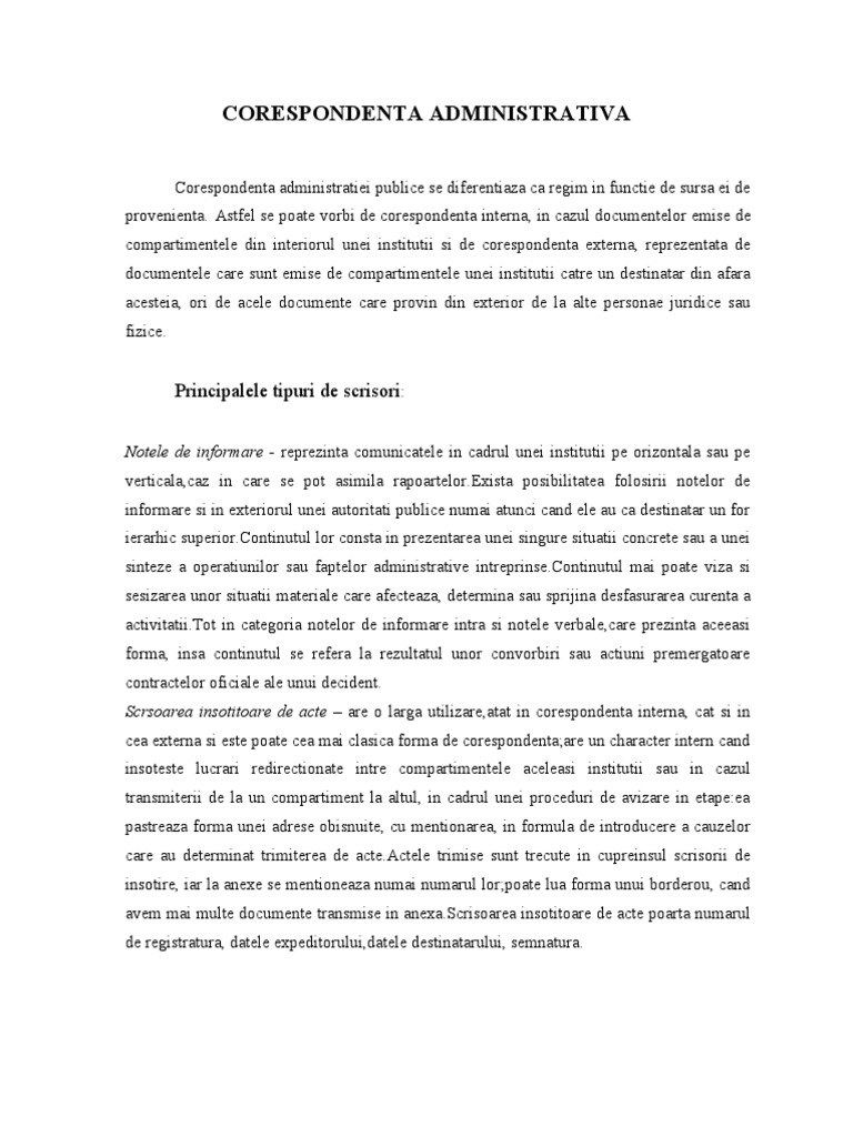 Corespondenta In Administratie Si Secretariat