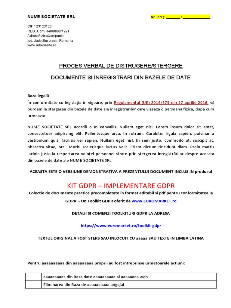 Kit Gdpr Proces Verbal De Distrugere Stergere Din Baza De Date