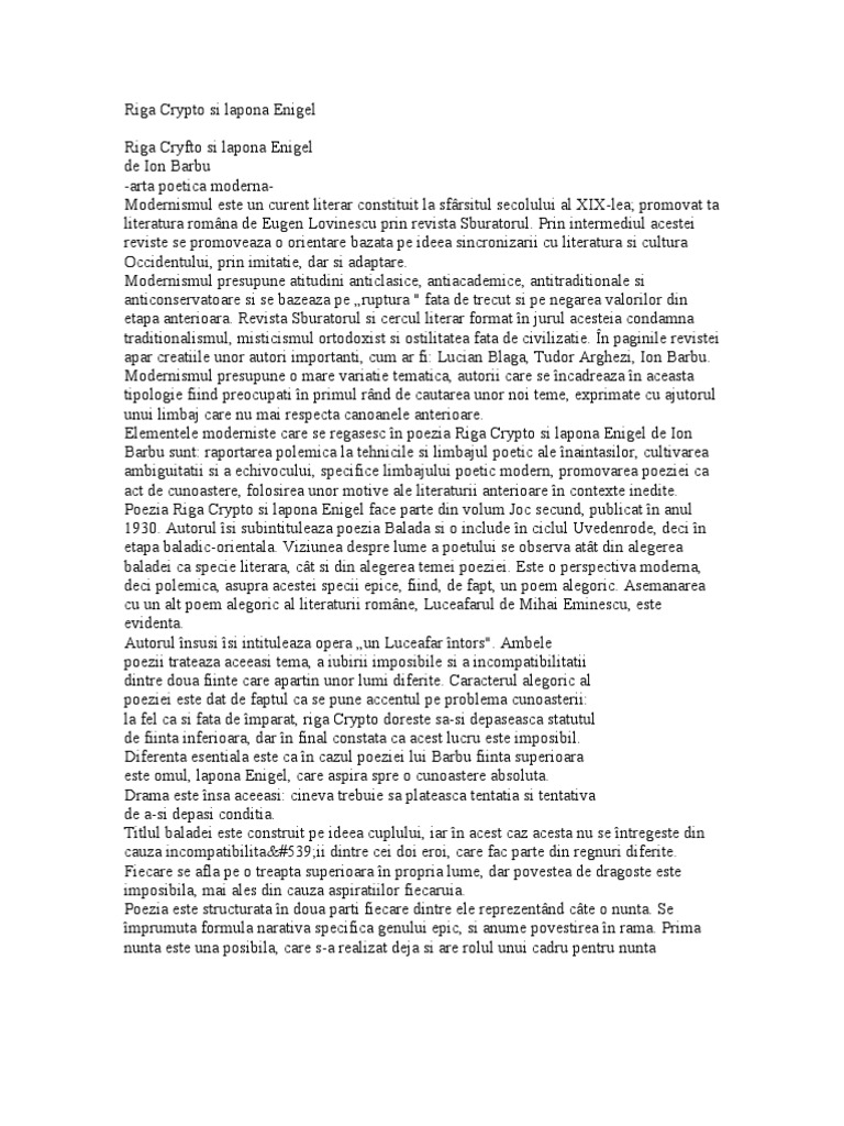 Referat Ion Barbu Riga Crypto Si Lapona Enigel 329196 Graduo