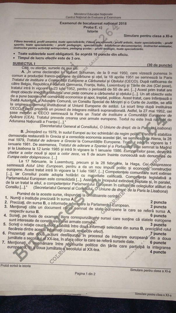 Vezi mai jos ce a picat. E c xi istorie 2018 bar simulare lro clasa a 12 a edu ro subiecte bareme simulare bac 2018 istorie. Subiecte istorie simulare bac 2019 clasa a 12 a și clasa a 11 a. Simulare la istorie pentru absolvenții de la profilul umanist din filiera teoretică și pentru toate profilurile și specializările din filiera vocațională cu excepția celor de mai sus ce prevede ordinul de ministru care stabilește detaliile simulării pentru simularea la istorie de către elevii de clasa a xi a.